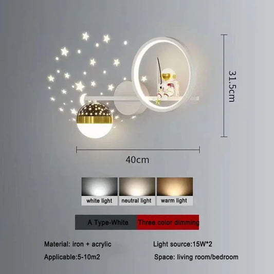Nowoczesna lampka ścienna LED, projektor gwiazd, dekoracja dla dzieci